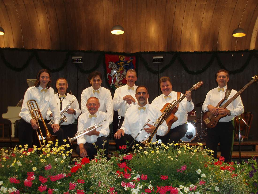 Die Staffelsee Big Band unter der Leitung von Herbert Gretschmann bietet Swingmusik nicht nur für Kenner, sondern für jeden, der den Sound der 30er und 40er Jahre - wie z. B. In the mood, Moonlight Serenade, Chattanooga Choo Choo - gerne hört. Bereits mehrmals konnte die Staffelsee Big Band Hugo Strasser als Gaststar begrüßen. Ergänzt wird das vielfältige Programm durch einen hervorragenden Sänger.. |